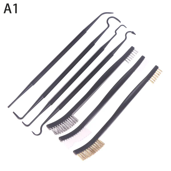 Keep your equipment spotless with this 7-piece cleaning kit, designed for precision cleaning in hard-to-reach areas. Perfect for gun maintenance, automotive work, home use, hobbies, and more, this kit provides the tools you need for detailed cleaning tasks.