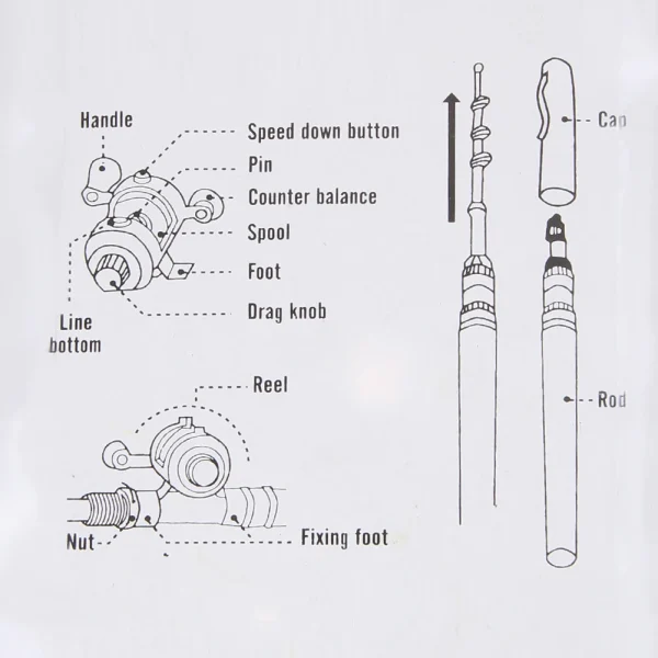 Crafted from fiberglass and aluminum alloy, the rod is durable enough to handle a fishing power rating of 1–6 lbs (0.45–2.72 kg). The included mini spinning reel ensures smooth casting and retrieval, whether you’re fishing in rivers, lakes, ponds, or even from a boat at sea.
